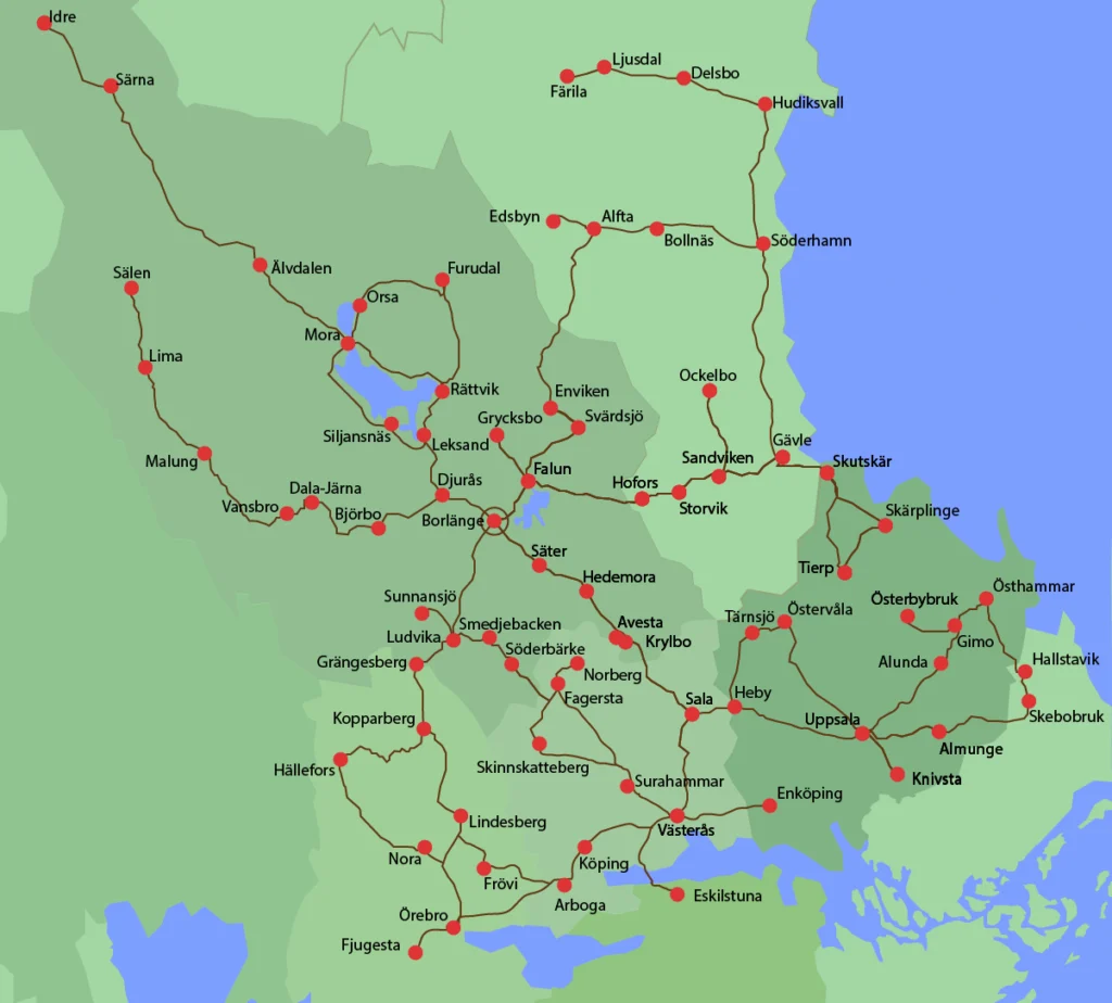 Rutt 3: Säter – Hedemora – Avesta – Krylbo – Sala – Västerås